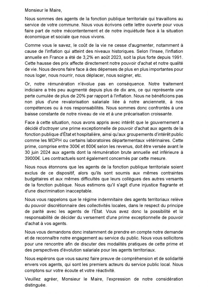 Nous mettons à votre disposition un tract et un modèle de lettre destiné à solliciter vos collectivités pour l’octroi de cette prime.