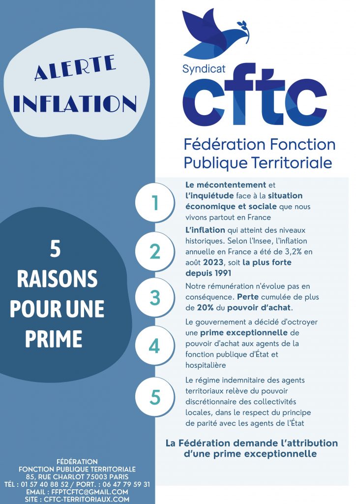 La FFPT-CFTC exprime avec force sa tristesse et son mécontentement face à l’escalade du coût de la vie, exacerbée par une inflation sans précédent, érodant le pouvoir d’achat des agents territoriaux.